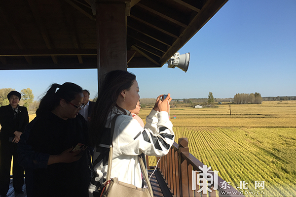 采訪團(tuán)駐足拍攝。東北網(wǎng)記者 霍梟涵 攝