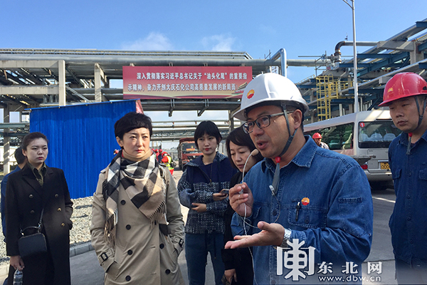大慶煉油廠副廠長崔俊峰向采訪團介紹情況。東北網(wǎng)記者 霍梟涵 攝