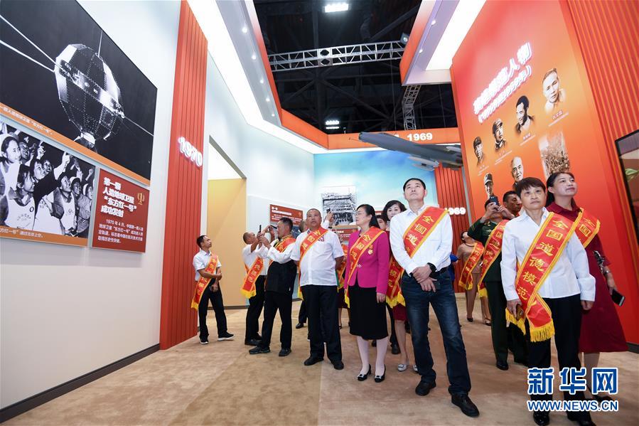 9月24日,英雄模范和先進典型代表在參觀成就展。 當(dāng)日是“偉大歷程 輝煌成就——慶祝中華人民共和國成立70周年大型成就展”向公眾開放的第一天。中宣部邀請200余位英雄模范和先進典型,包括時代楷模、雙百人物、全國道德模范、最美人物、中國好人、文化名家等參觀展覽。 新華社記者 陳曄華 攝