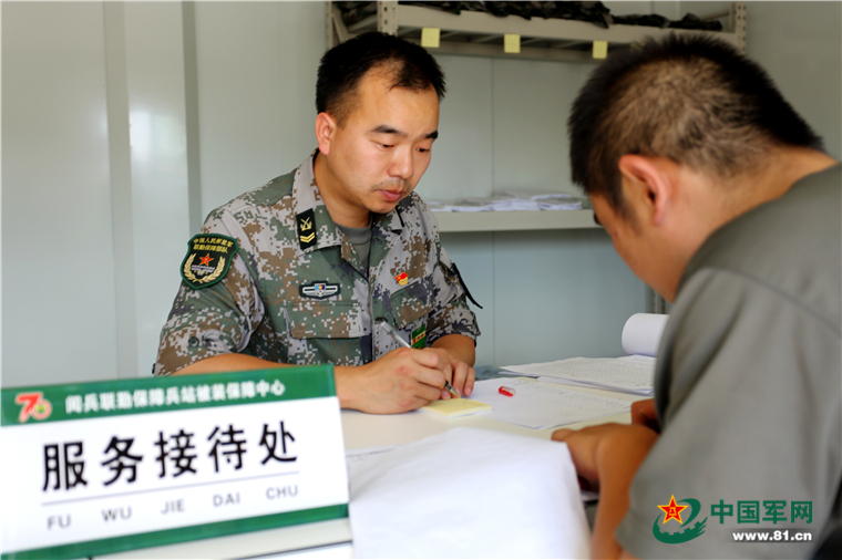 官兵來(lái)到被裝保障中心進(jìn)行被裝調(diào)號(hào)。(谷曉雨 攝)