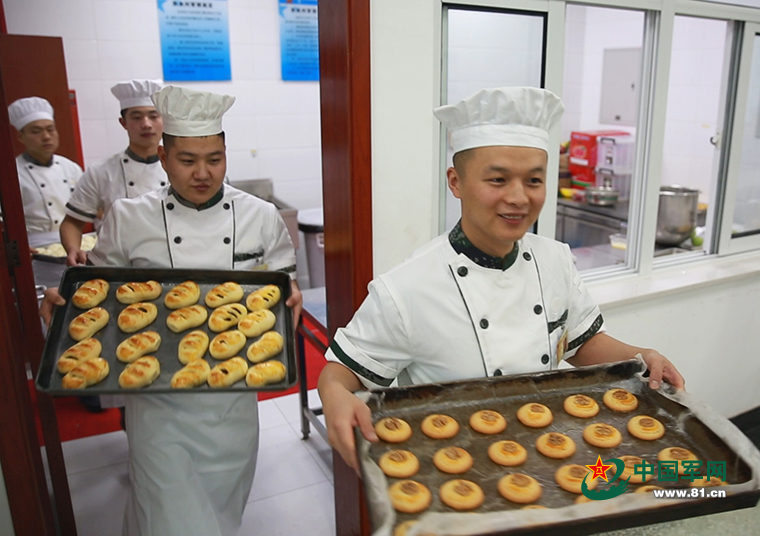 張中華和戰(zhàn)友們制作的面點(diǎn)新鮮出爐。王子琛攝