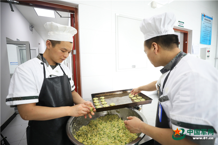 炊事班人員正在制作糕點(diǎn)。王子琛攝