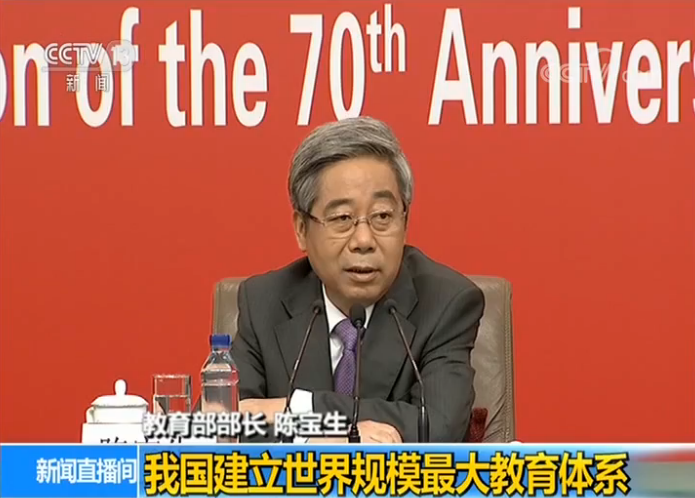 教育部部長陳寶生介紹,經(jīng)過70年的努力,我們已經(jīng)建起了當(dāng)今世界規(guī)模最大的教育體系,我國現(xiàn)在教育總體水平已經(jīng)躍居世界中上行列。