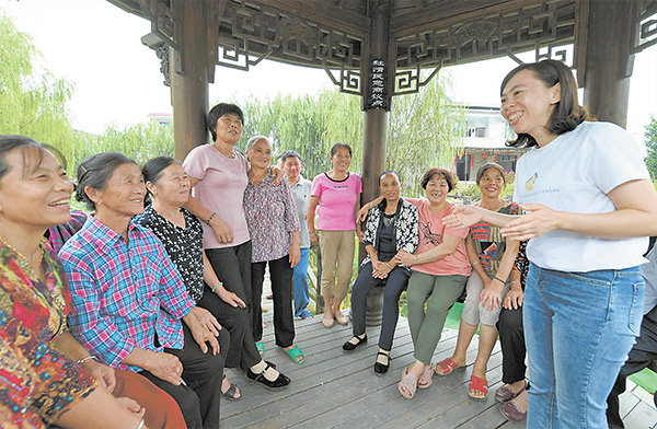 福建省邵武市水北鎮(zhèn)大乾村發(fā)揮村黨支部的戰(zhàn)斗堡壘作用,因地制宜發(fā)展食用菌、優(yōu)質(zhì)瓜果種植等特色農(nóng)業(yè),帶領(lǐng)村民脫貧致富。這是2018年9月11日,該村駐村第一書記在村社情民意商議點(diǎn)向村民征求文化設(shè)施建設(shè)意見。新華社記者 張國(guó)俊 攝