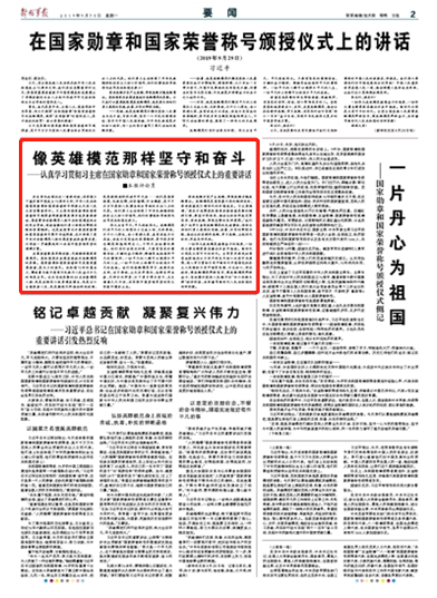歷史將永遠(yuǎn)銘記這一重要時刻:在舉國上下喜慶新中國成立70周年之際,中華人民共和國國家勛章和國家榮譽(yù)稱號頒授儀式在人民大會堂隆重舉行。習(xí)主席向國家勛章和國家榮譽(yù)稱號獲得者頒授勛章獎?wù)虏l(fā)表重要講話,高度贊揚功勛模范人物為共和國建設(shè)作出的突出貢獻(xiàn),深刻詮釋他們身上體現(xiàn)的鮮明品格和崇高精神。這是我國首次開展國家勛章和國家榮譽(yù)稱號集中評選頒授,充分體現(xiàn)了黨中央對功勛模范人物的高度重視和真情關(guān)愛,必將進(jìn)一步凝聚起同心共筑中國夢強(qiáng)軍夢的磅礴力量。