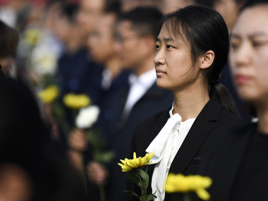 9月30日,烈士紀(jì)念日向人民英雄敬獻(xiàn)花籃儀式在北京天安門廣場隆重舉行。新華社記者 殷博古 攝