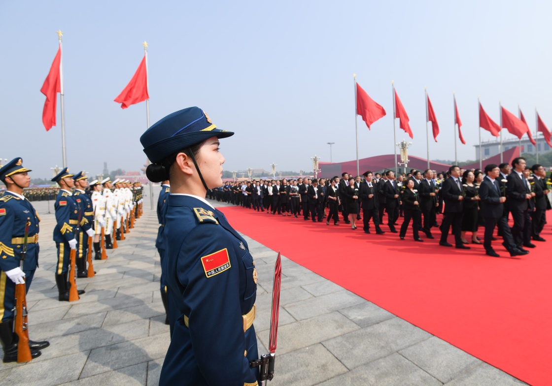 9月30日,烈士紀(jì)念日向人民英雄敬獻(xiàn)花籃儀式在北京天安門廣場(chǎng)隆重舉行。新華社記者申宏攝