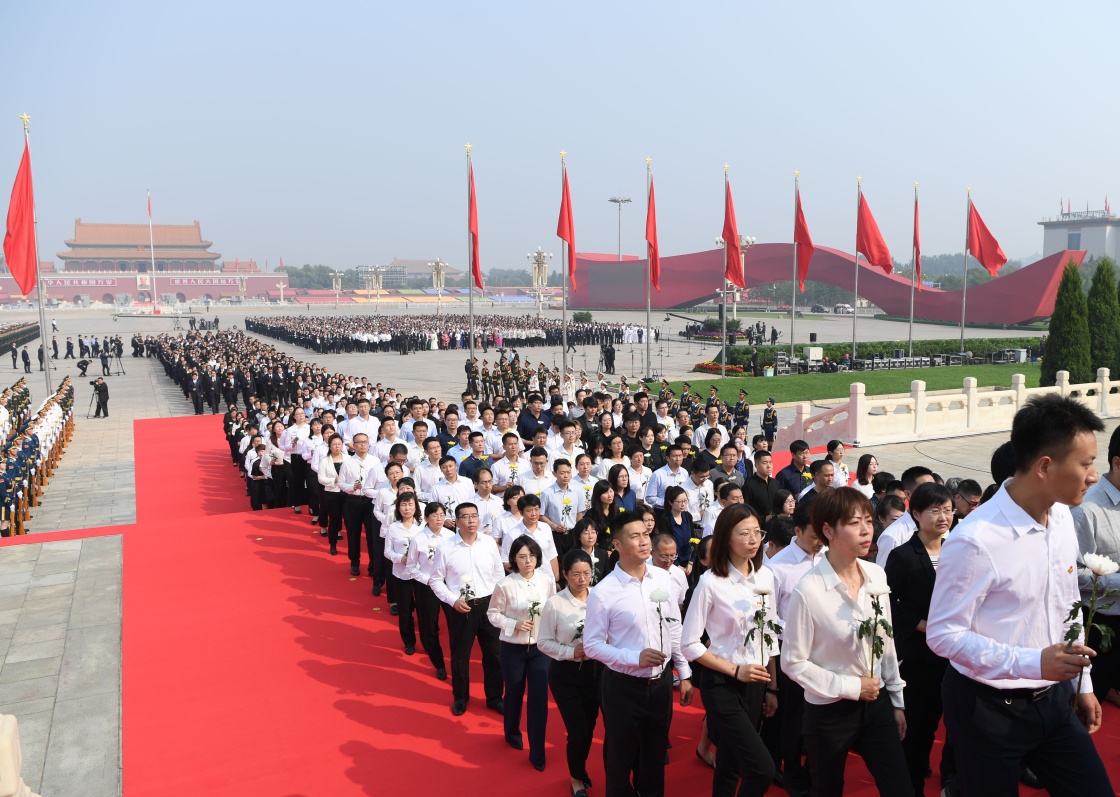 9月30日,烈士紀(jì)念日向人民英雄敬獻(xiàn)花籃儀式在北京天安門(mén)廣場(chǎng)隆重舉行。新華社記者申宏攝