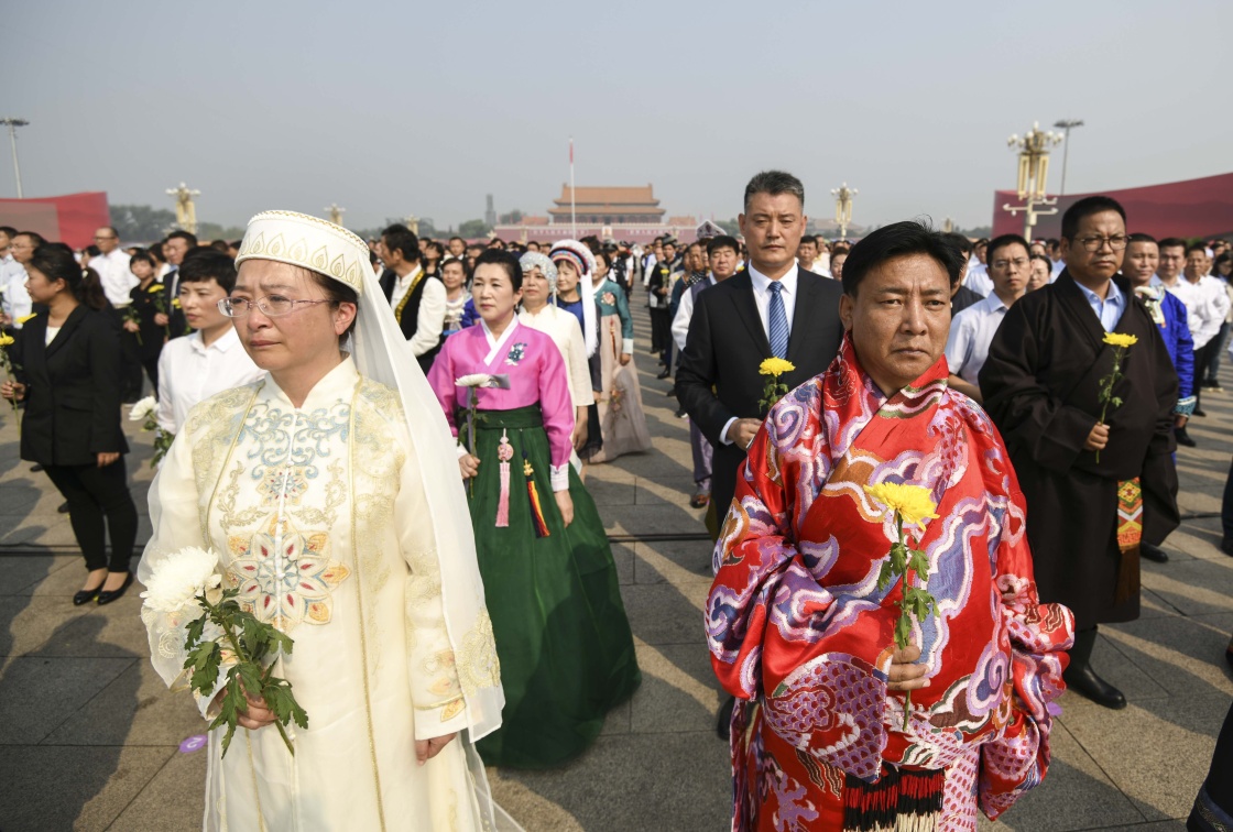 9月30日,烈士紀(jì)念日向人民英雄敬獻(xiàn)花籃儀式在北京天安門廣場(chǎng)隆重舉行。新華社記者 殷博古 攝