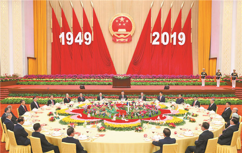 9月30日晚,慶祝中華人民共和國(guó)成立70周年招待會(huì)在北京人民大會(huì)堂隆重舉行。中共中央總書(shū)記、國(guó)家主席、中央軍委主席習(xí)近平出席招待會(huì)并發(fā)表重要講話。新華社記者 黃敬文攝