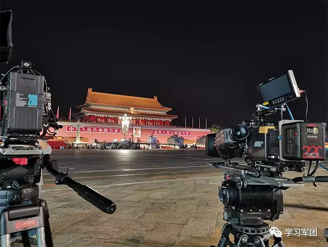 天安門(mén)廣場(chǎng)燈火通明;機(jī)位準(zhǔn)備就緒。(解放軍報(bào)記者馮凱旋3時(shí)攝于天安門(mén)廣場(chǎng))