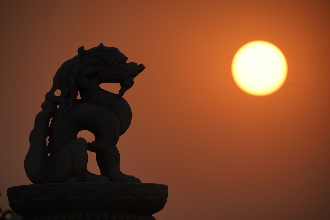 10月1日上午,慶祝中華人民共和國成立70周年大會將在北京天安門廣場隆重舉行。這是在天安門前拍攝的一輪紅日。新華社記者 邢廣利 攝
