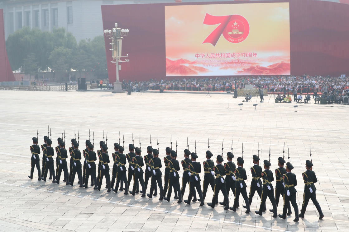 10月1日上午,慶祝中華人民共和國成立70周年大會將在北京天安門廣場隆重舉行。這是禮兵在做準備。新華社記者 王曄 攝