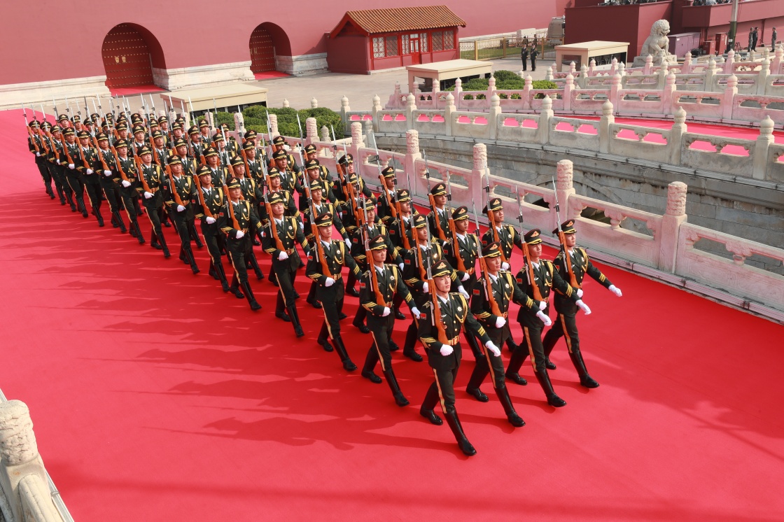 10月1日上午,慶祝中華人民共和國成立70周年大會(huì)將在北京天安門廣場(chǎng)隆重舉行。這是禮兵在做準(zhǔn)備。新華社記者 龐興雷 攝