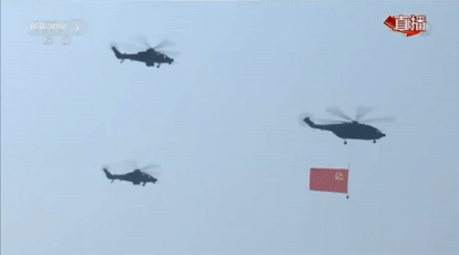 空中護(hù)旗梯隊(duì)護(hù)衛(wèi)著中國共產(chǎn)黨黨旗、中華人民共和國國旗、中國人民解放軍軍旗,飛過天安門廣場(chǎng)上空,這畫面簡(jiǎn)直燃爆了啦!