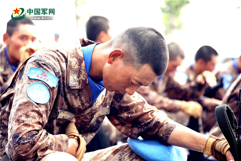 維和方隊(duì)在進(jìn)行閱兵訓(xùn)練,顏色在他們身上顯得特別(圖/馬騫)