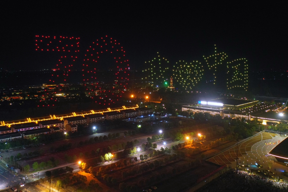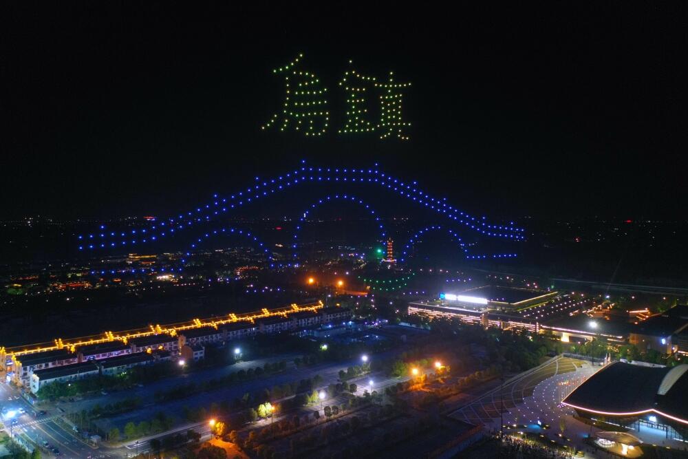9月29日晚上,桐鄉(xiāng)烏鎮(zhèn),500架無人機以天幕為舞臺,在“互聯(lián)網(wǎng)之光”博覽中心上空,上演了時長約15分鐘的科技光影秀。古鎮(zhèn)夜空,500架無人機不斷變換出“70我愛中國”“世界互聯(lián)網(wǎng)大會”“我自愛桐鄉(xiāng)”“烏鎮(zhèn)的小橋流水”“玫瑰花開”等圖案和文字,花式“表白”祖國母親。