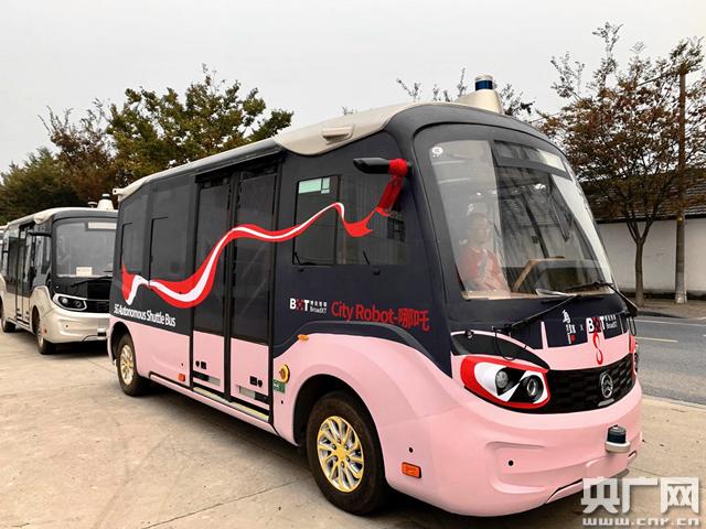 無人駕駛的5G自動(dòng)微公交將承擔(dān)部分參會(huì)嘉賓的接駁任務(wù)。(央廣網(wǎng)記者馬文靜 攝)
