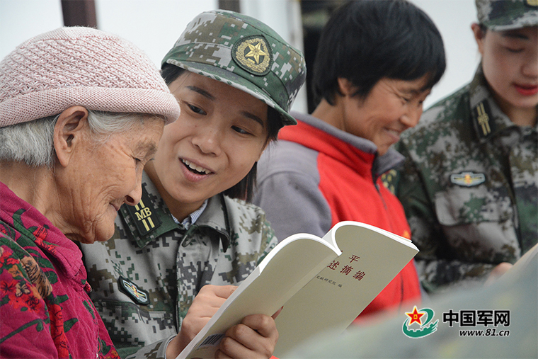重慶涪陵區(qū)人武部民兵扶貧隊(duì)隊(duì)員為土井村村民講解扶貧政策,帶領(lǐng)群眾找到脫貧致富的“金鑰匙”。(黃春紅 攝)