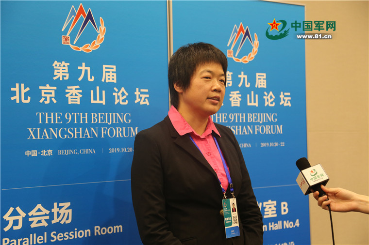 北京香山論壇觀察員羅新芹接受中國軍網(wǎng)記者采訪。