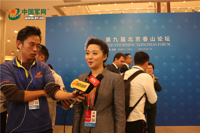 10月21日,第九屆北京香山論壇,軍事科學(xué)院戰(zhàn)爭研究院副研究員童真接受記者采訪 。