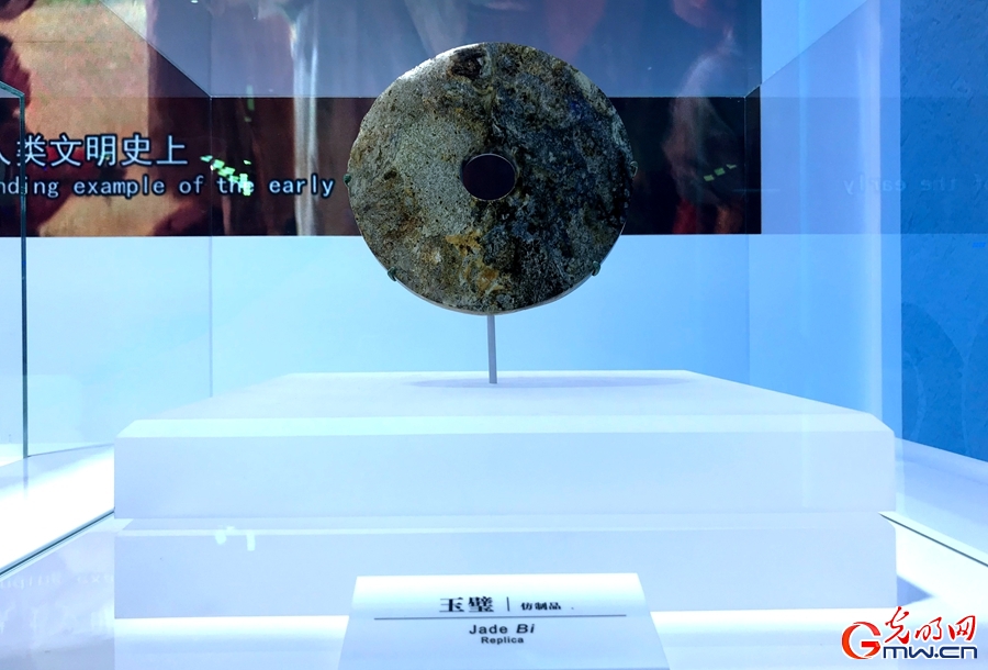 當(dāng)5000多年的良渚文化,與開放的進(jìn)博會大舞臺相遇,會出現(xiàn)什么樣的火花?在中國館內(nèi),良渚文化展項(xiàng)是重要內(nèi)容之一。良渚文化展項(xiàng)位于進(jìn)博會中國館美麗中國區(qū)域。整個(gè)展區(qū)布局呈“L”型,實(shí)際利用空間為4米(長)×4米(寬)×3.5米(展墻高度)。在“L”型地面空間上,以“展臺+玻璃罩”的形式,展示了琮、璧、鉞仿制玉器。