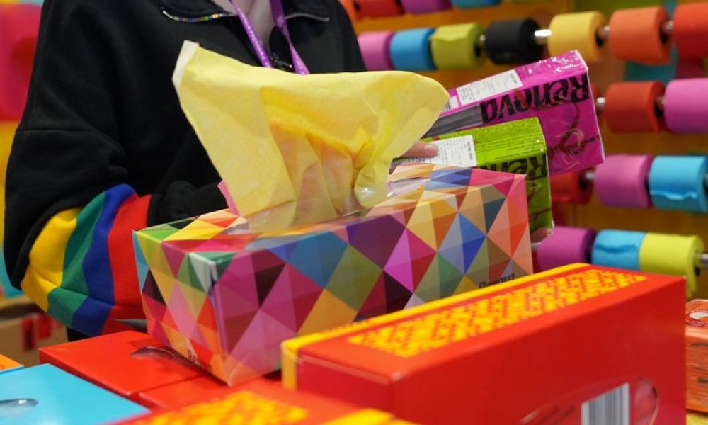 11月9日,這是進博會現場展示的原產自葡萄牙的彩色紙巾。新華社記者 陳倩 攝
