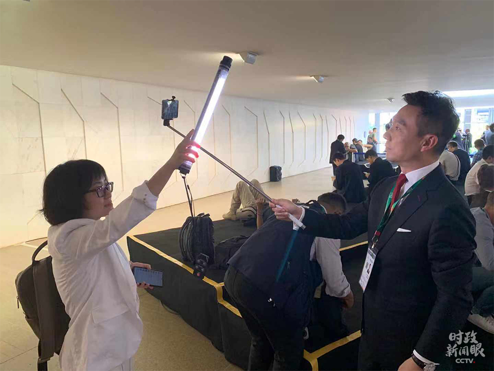 會(huì)晤開始前,在巴西外交部拍攝的康老師。(央視記者章猛拍攝)