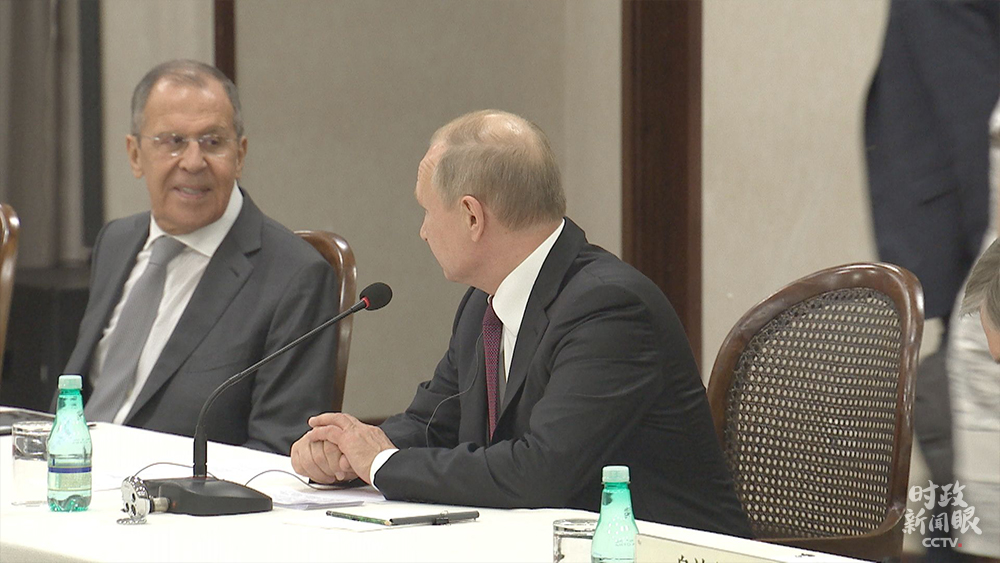 會(huì)談桌上的普京和拉夫羅夫。習(xí)近平對(duì)他們說:新時(shí)代要有新舉措、新作為。我們雙方要繼續(xù)共同努力,更好造福兩國人民,惠及地區(qū)及世界。(央視記者荊偉拍攝)