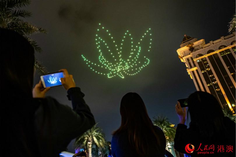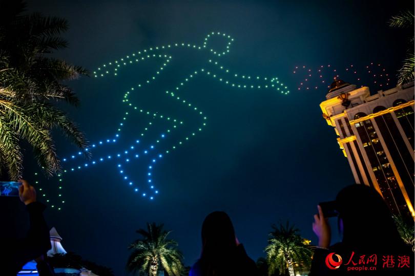 人民網(wǎng)澳門11 月 30日電(記者毛磊) 為迎接即將于 12 月 1 日舉行的“慶祝澳門特別行政區(qū)成立20周年— 2019 銀河娛樂澳門國際馬拉松”,11月29日晚,澳門銀河娛樂集團在天浪淘園舉辦“翱翔星空表演”,安排 300 架無人機編隊表演,透過雷射、燈光及音效等技術(shù),排列出一系列祝賀澳門回歸與運動元素的特色圖案,在夜空中帶來精彩閃耀的演出。