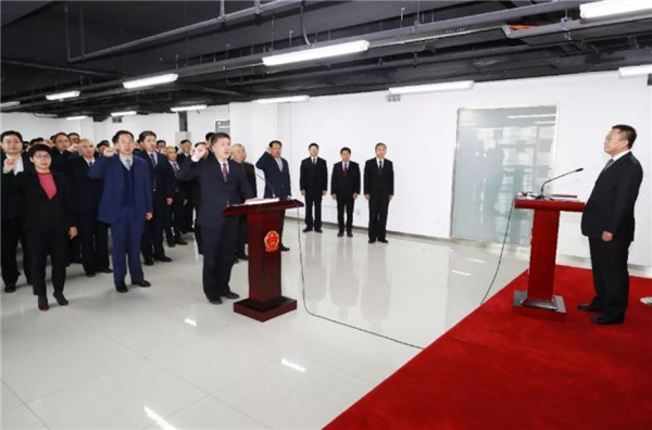 部機(jī)關(guān)會(huì)議室國(guó)徽高懸,五星紅旗鮮艷奪目,氣氛莊重嚴(yán)肅。下午3時(shí),方永祥副部長(zhǎng)宣布儀式開(kāi)始。全體人員列隊(duì)肅立,面向國(guó)旗國(guó)徽,同唱國(guó)歌。領(lǐng)誓人左手撫按憲法,右手握拳,領(lǐng)誦誓詞,宣誓人整齊站立,舉起右拳,跟誦誓詞,向憲法和人民作出莊嚴(yán)承諾。