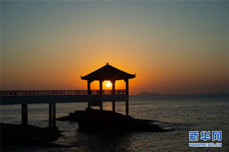 9月21日拍攝的澳門龍爪角日出。 新華社記者 張金加 攝
