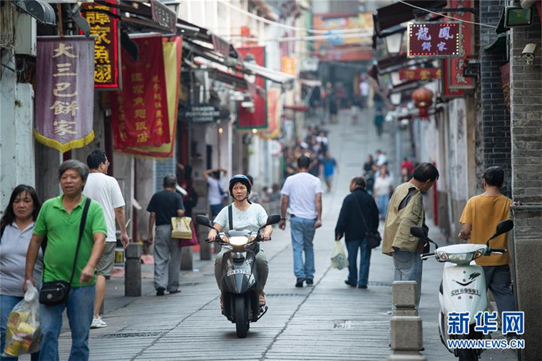11月18日,人們走在澳門福隆新街上。 新華社記者 張金加 攝