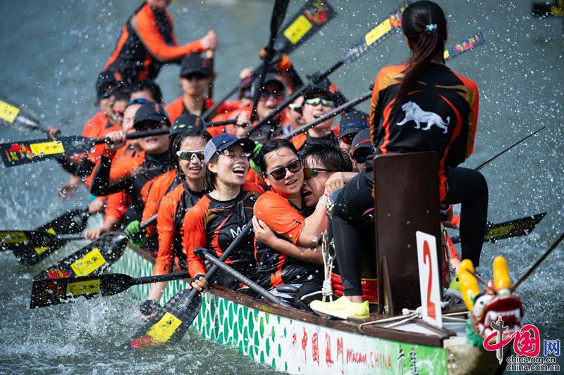 澳門國際龍舟賽獲勝隊?wèi)c祝勝利 張金加 攝