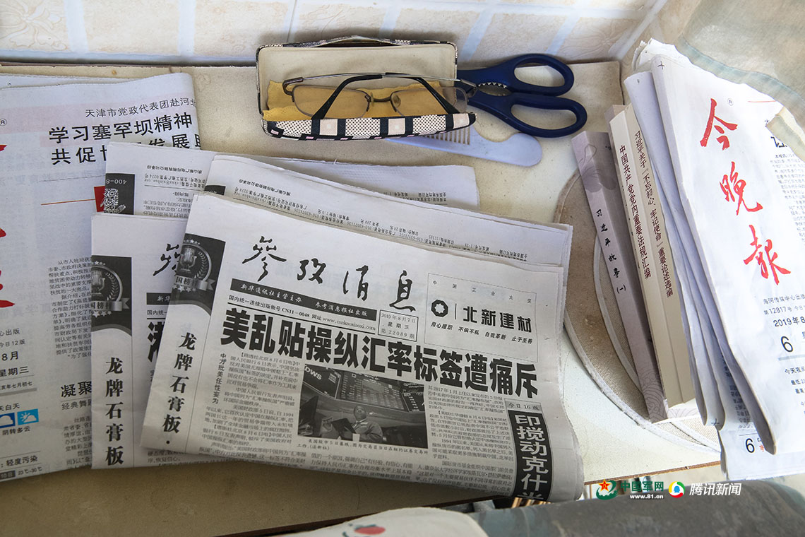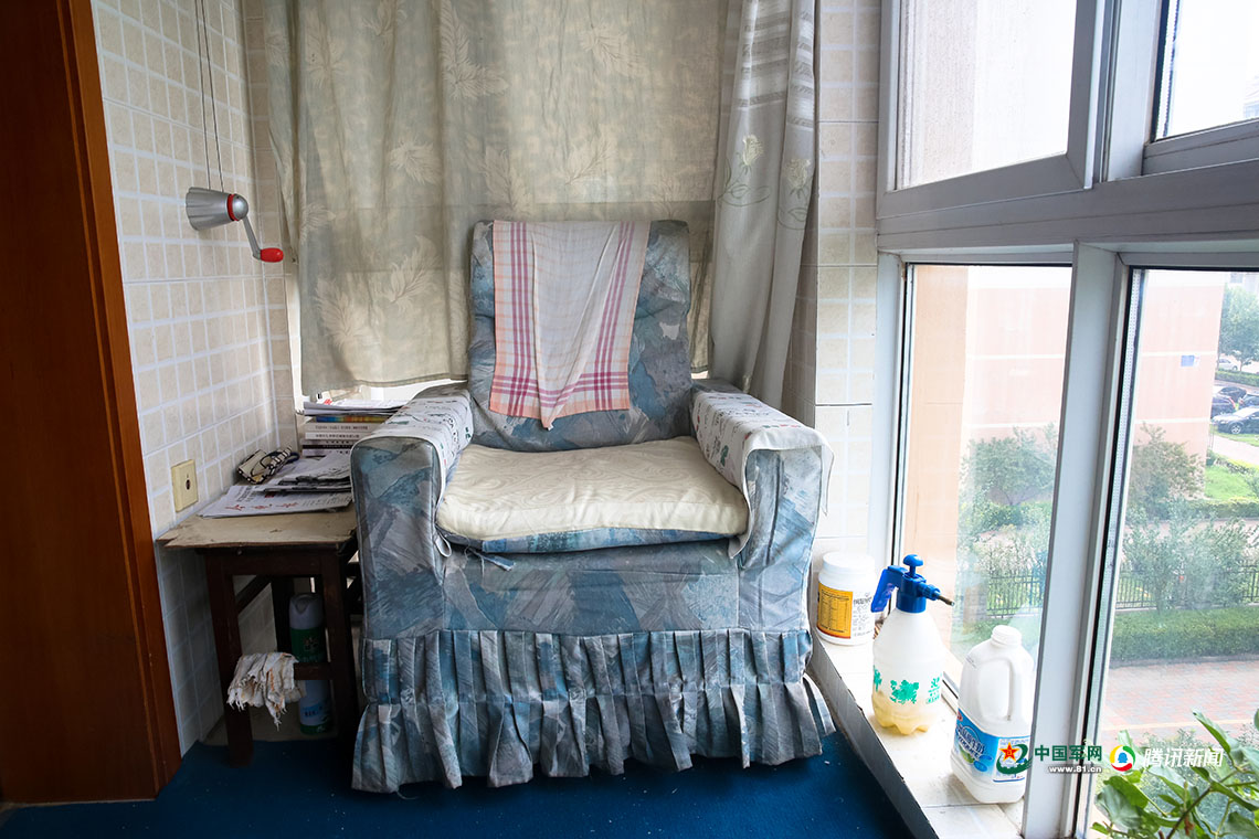 看報紙、收看新聞聯(lián)播、聽京劇、種花養(yǎng)鳥……這是蘇征南離休后30多年主要的生活習慣。他的住所有一個大陽臺,陽臺的一角放著一張單人沙發(fā),旁邊是用木板放在凳子上搭的一個簡易小桌子,看上去有些年頭了,桌面上擺著近幾天的報紙和一副老花鏡。有時他也喜歡坐在陽臺上拿著收音機聽上一小段京戲。陽臺上晾著一件有些泛黃還有幾個小洞的白背心,這是蘇征南老人夏天最愛穿的背心,陽臺的地上擺著幾盆花草,鳥兒在鳥籠里面蹦蹦跳跳唱著歌。