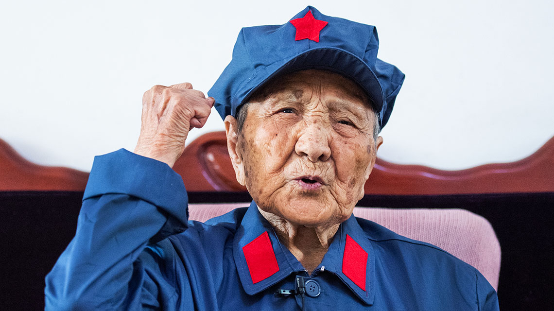 我的面前是此行采訪唯一的一位“90后”——99歲的老紅軍田瑛。