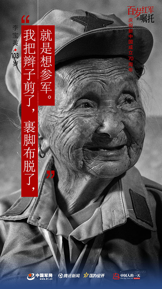“我把辮子剪了,裹腳布脫了,就是想?yún)④?。毛主席好,共產(chǎn)黨好,我年輕時(shí)做了一些該做的事,沒有想到黨給了我這么高的榮譽(yù)?!薄顚氂ⅰ?03歲