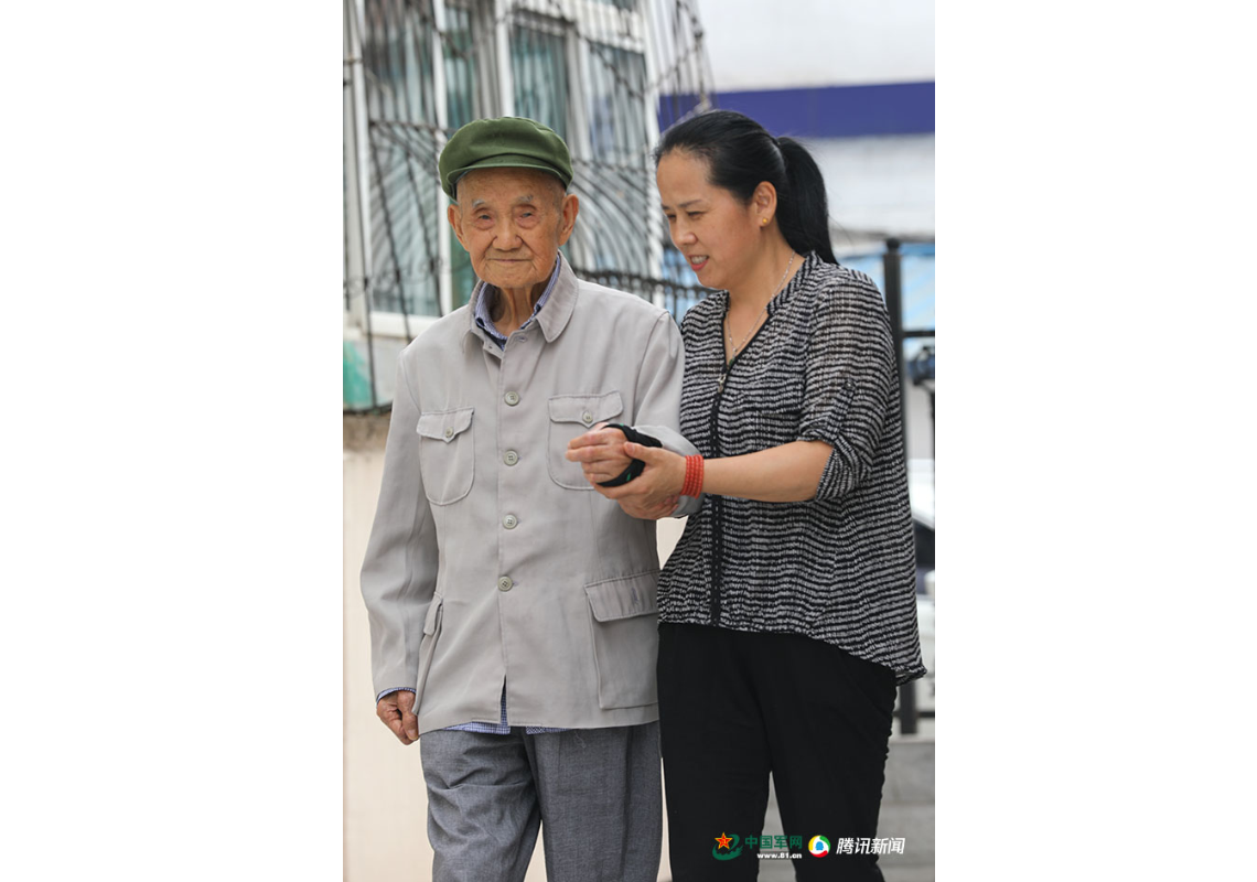 采訪達(dá)到半個(gè)小時(shí)的時(shí)候,老人表現(xiàn)出了輕微頭暈和口齒表達(dá)不清的情況,楊煥炳的大女兒見狀馬上終止了采訪,然后很自然地開始給他做起頭部按摩,看的出來這是她每天都會(huì)做的事情。當(dāng)記者想拍下這一畫面時(shí),楊煥炳的大女兒拒絕了,“不要拍我,我伺候父親是一個(gè)女兒的責(zé)任,沒什么好拍的。”在孩子們眼里,楊煥炳沒有豐功偉績(jī),沒有高談闊論,只是一個(gè)普通老人,一個(gè)普通父親。