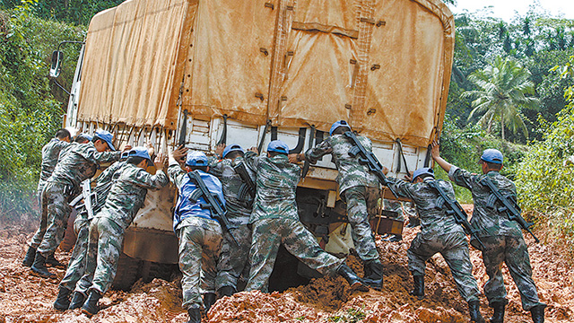 在尼泊爾地震的廢墟上,中國(guó)武裝力量派出的救援隊(duì)伍晝夜奮戰(zhàn)救援。