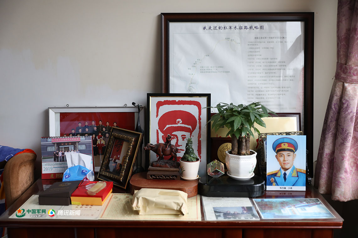 一直忙前忙后的工作人員是個(gè)年輕的戰(zhàn)士,2014年來到張力雄身邊,負(fù)責(zé)照顧他的日常起居。當(dāng)時(shí)他知道要照顧的是張力雄的時(shí)候,心里特別激動(dòng)?!皬膩頉]想過能這樣近距離接觸一個(gè)老將軍,還是從革命年代走來的常勝將軍?!彼f,張力雄將軍喜歡散步走路,喜歡下軍棋,喜歡喝茶,也會(huì)跟他講革命年代的故事。