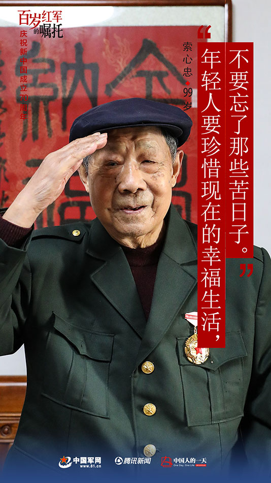 99歲的索心忠的囑托:年輕人要珍惜現(xiàn)在的幸福生活,現(xiàn)在百姓生活條件好了,不能忘了那些苦日子。