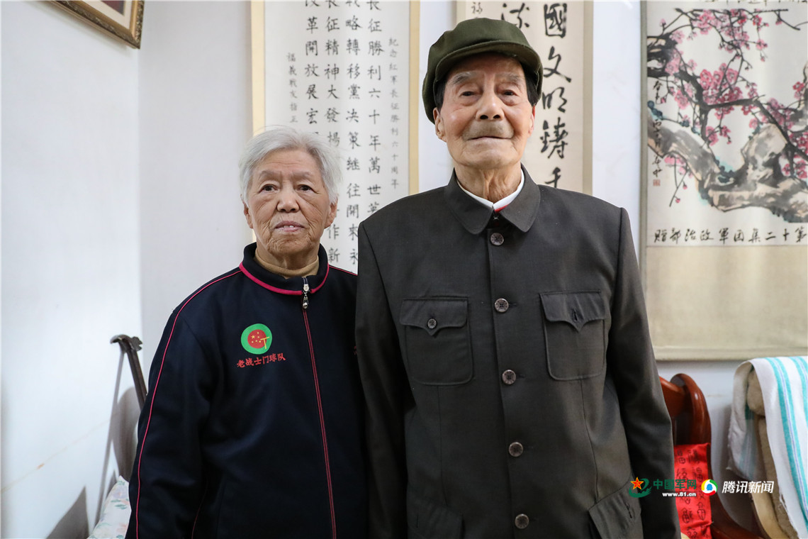 “結(jié)婚的時(shí)候沒錢,部隊(duì)的戰(zhàn)友湊錢買了點(diǎn)花生、瓜子,大家一起吃到半夜,這婚就結(jié)成了?!苯Ax興沖沖地拿著他的結(jié)婚照給我看,并且止不住的跟記者夸說,他老伴兒年輕時(shí)可漂亮了,就跟十八九歲剛談戀愛的小伙子炫耀自己女朋友一個(gè)狀態(tài)。照片上的姜福義頭發(fā)還很多,眉眼特別干凈秀氣,姚青萍奶奶則是梳著兩個(gè)長(zhǎng)長(zhǎng)的辮子,臉頰有點(diǎn)輕微的紅暈,確實(shí)是個(gè)美人。姜福義仍舊在夸,已經(jīng)頭發(fā)花白的姚奶奶在一旁嗔笑,這兩個(gè)說沒有經(jīng)歷過戀愛的人明明一直沉浸在愛情里,65年了,仍是如此甜蜜。
