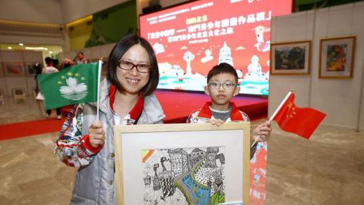 “童畫中國夢——澳門青少年繪畫作品展”19日在北京開幕。寓意澳門回歸的99幅澳門兒童繪畫作品與公眾見面。