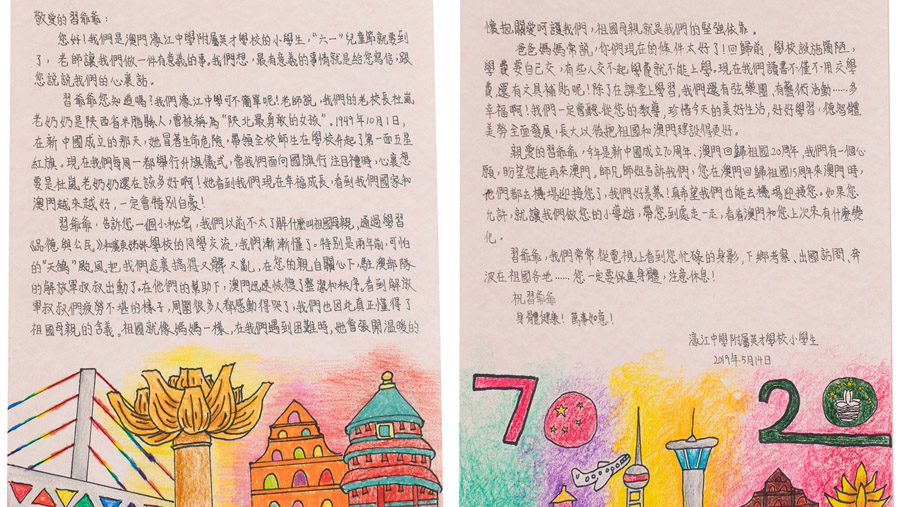 近日,澳門濠江中學附屬英才學校的小學生給國家主席習近平寫信,講述他們對“祖國母親”含義的理解,表達長大后把祖國和澳門建設得更美好的決心。