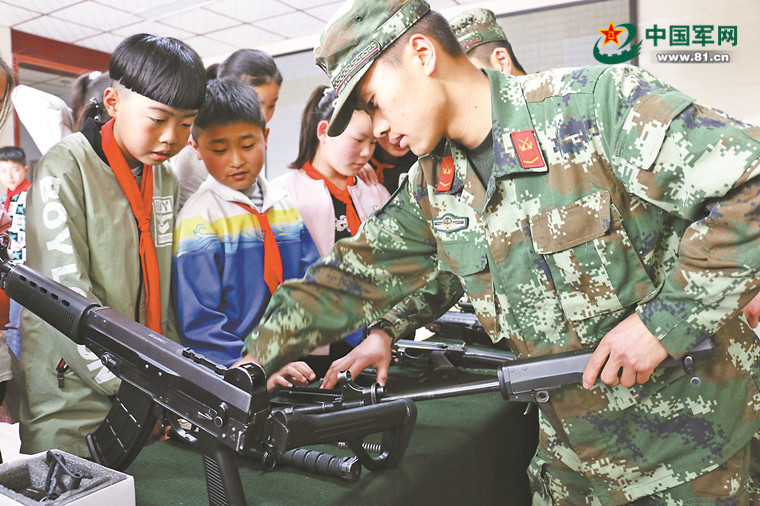 在我國(guó)第二個(gè)全民國(guó)家安全教育日來(lái)臨之際,武警河南總隊(duì)鶴壁支隊(duì)邀請(qǐng)鶴壁市第五小學(xué)師生到營(yíng)區(qū)開(kāi)展“國(guó)家安全連你我、軍民攜手筑長(zhǎng)城”主題開(kāi)放日活動(dòng),向?qū)W生們普及國(guó)防建設(shè)知識(shí),提高國(guó)家安全意識(shí)。趙付威 攝