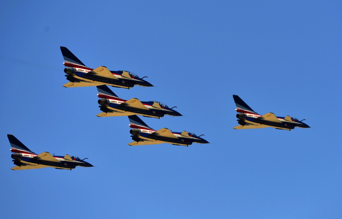 春雨后的華北某軍用機(jī)場,碧空如洗,風(fēng)輕云淡。11時(shí)許,伴隨著震耳欲聾的發(fā)動機(jī)轟鳴聲,6架紅、白、藍(lán)3色涂裝的空軍殲-10表演機(jī)滑出停機(jī)坪,依次滑向起飛線。