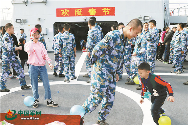 日前,南部戰(zhàn)區(qū)海軍某船內(nèi)外張燈結(jié)彩、喜氣洋洋。該船黨委邀請(qǐng)來隊(duì)軍屬參觀軍艦、新春游園、吃團(tuán)圓飯,歡度即將到來的鼠年春節(jié)。請(qǐng)關(guān)注今日出版的《解放軍報(bào)》的詳細(xì)報(bào)道——