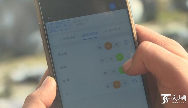 天山網(wǎng)訊(記者孫圓圓 王鵬喆攝影報(bào)道)1月16日,疏勒縣庫(kù)木西力克鄉(xiāng)庫(kù)木西力克村的一座溫室大棚里,約日古麗·阿布杜卡德?tīng)栒谥悄艽笈锢锿ㄟ^(guò)手機(jī)控制噴淋滴灌設(shè)備,大棚里的空氣溫濕度、土壤溫濕度等數(shù)據(jù)在大棚入口處的電子屏幕上實(shí)時(shí)顯示。