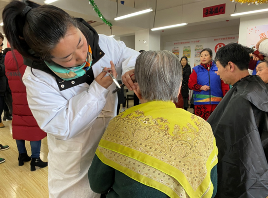 志愿者為老人理發(fā)(記者鄭月 攝)