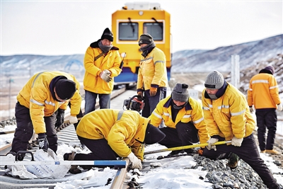春節(jié)前夕在“魔鬼風(fēng)區(qū)”堅(jiān)守崗位的鐵路工人。擺風(fēng)亮攝/光明圖片